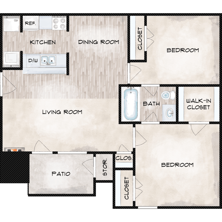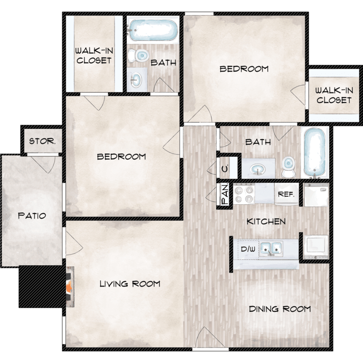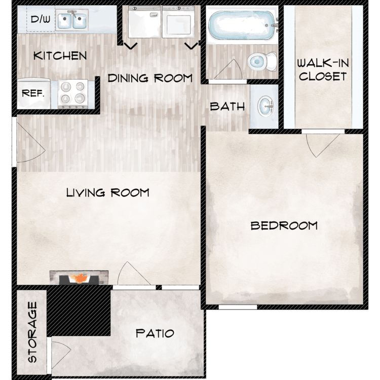 We offer spacious one and two-bedroom apartments for rent. Each residence features an electronic thermostat, an individual water heater, extra storage, and connections for a washer and dryer. Also included are large closets, a dishwasher, a microwave, ceiling fans, and a fireplace. A balcony or patio increases your living space and provides a relaxing spot to unwind.